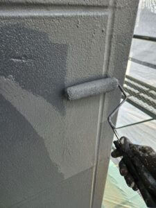 外壁塗装工事の流れ③の下塗りの際にもありましたが、塗料を希釈する際に薄めすぎてしまう、塗膜に厚みがないと塗料本来の性能が発揮できず、また乾燥時間が足りないと中塗り、上塗りとの接着力が弱くなり本来の耐候年数を待たずに劣化してしまいます。塗料を適正量使用し、塗膜に厚さが出るように塗り、しっかり乾燥させます。