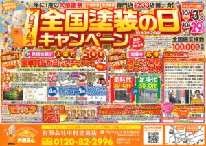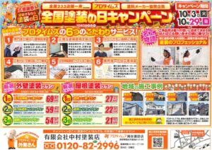 中村塗装店では、10月3日~10月29日まで全国のプロタイムズと合同で全国塗装の日キャンペーンを開催します!