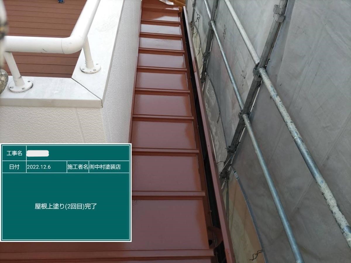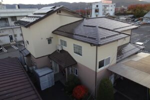| 使用塗料 | 外壁/アステックペイント/エポパワーシーラー(下塗り1回) 超低汚染プラチナリファイン2000MF(上塗り2回) 屋根/アステックペイント/サーモテックメタルプライマー(下塗り1回) スーパーシャネツサーモF(上塗り2回) |