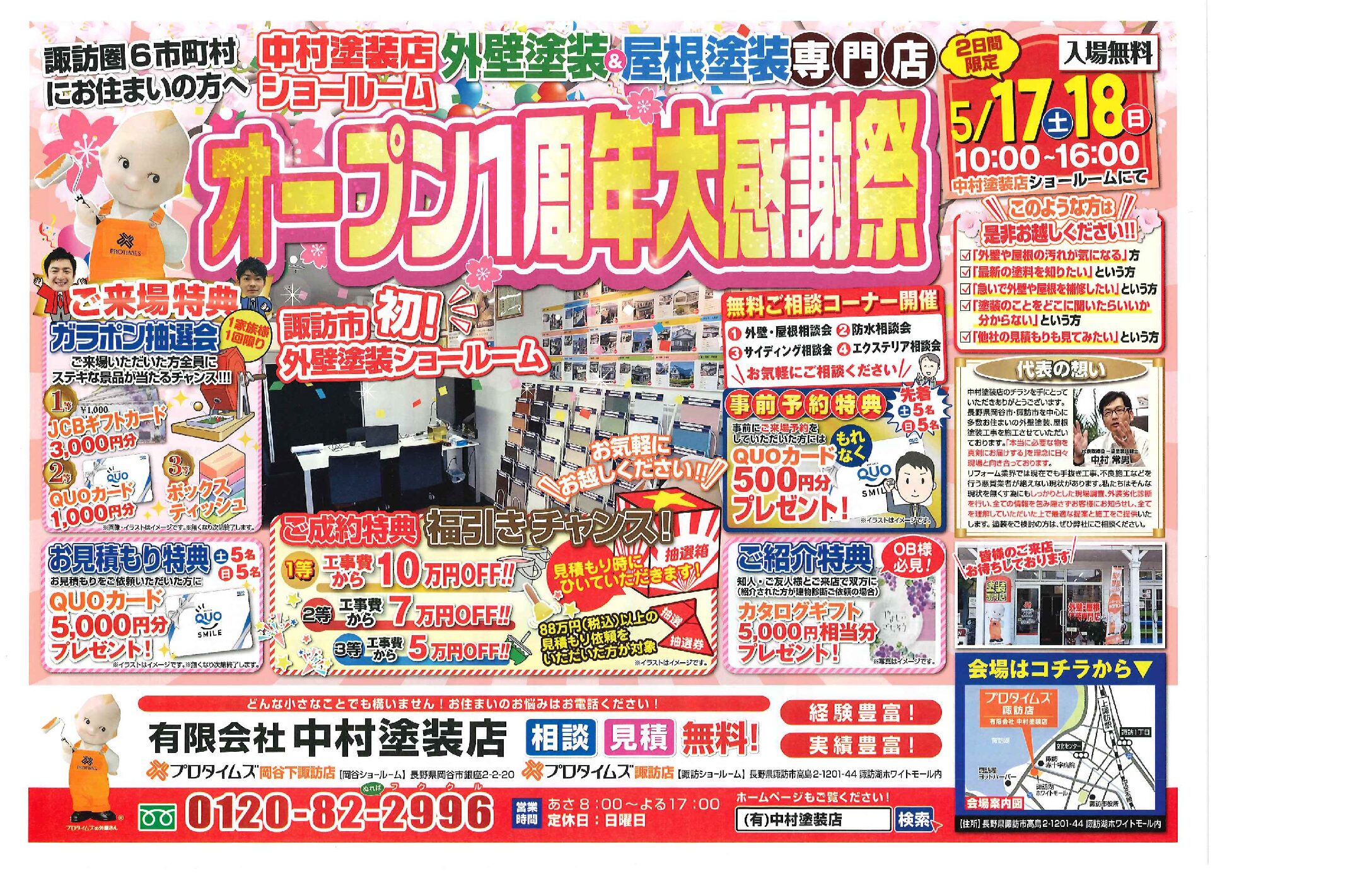 【諏訪市 外壁塗装 無料イベント開催】中村塗装店ショールーム1周年感謝祭🎉ご来場特典&相談会あり!